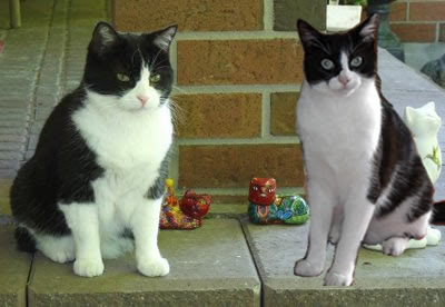 Milo's fur stood on end and his ears went back and then Domino's did likewise. The electricity (or is that electri-kitty?) was palpable. It was love at furst sight!