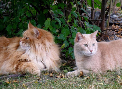 Here are a few pictures from the past of Dante and Dylan passing time together.  They are not just fairweather furiends, they are mancats for all seasons.